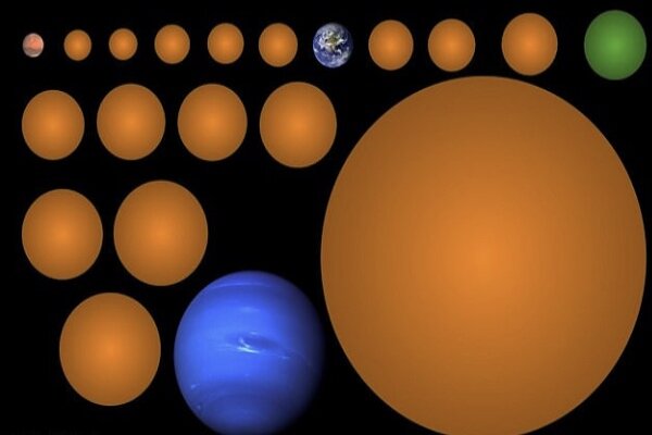 از میان ۱۶ سیاره دیگر، یکی از آنها فقط دو سوم حجم زمین را دارد. این یکی از کوچکترین سیاراتی است که تاکنون تلسکوپ کپلر کشف کرده است. بقیه سیارات بزرگتر هستند و بزرگترین آنها ۸ برابر زمین است.