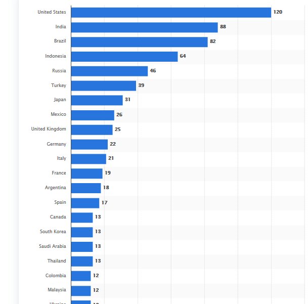 در زیر فهرستی از کشورهای جهان را که میزبان بیشترین تعداد کاربران فعال در اینستاگرام هستند را مشاهده می کنید: