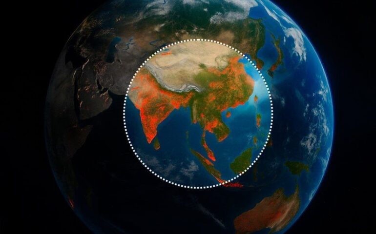 در این نقشه ۲ ابرقدرت جهان، چین و هند، تقریباً کامل در این دایره جای میگیرند. علاوهبر چین و هند، کشورهای پرتراکم دیگری همچون ژاپن، تایلند، کره جنوبی، مالزی، تایوان، اندونزی و فیلیپین نیز در این ناحیه قرار دارند.و فقط ۶.۷ درصد سطح زمین را در بر میگیرد. این مفهوم را نخستین بار کاربری به نام «Valeriepieris» سال ۲۰۱۳ در ردیت مطرح و توجه جهانیان را به خود جلب کرد.